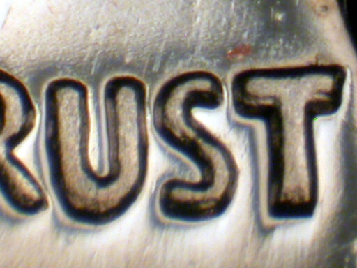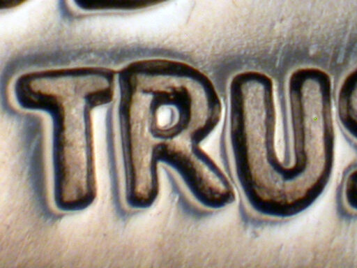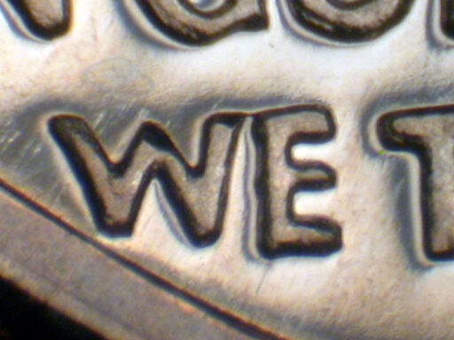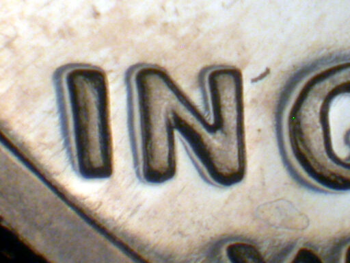 Light spread on IN GOD WE TRUST, designer's initials, and date