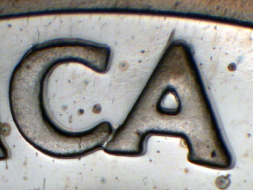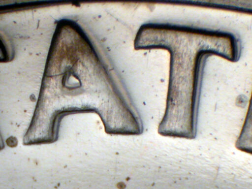 Medium extra thickness on UNITED STATES OF AMERICA, ONE DIME, and